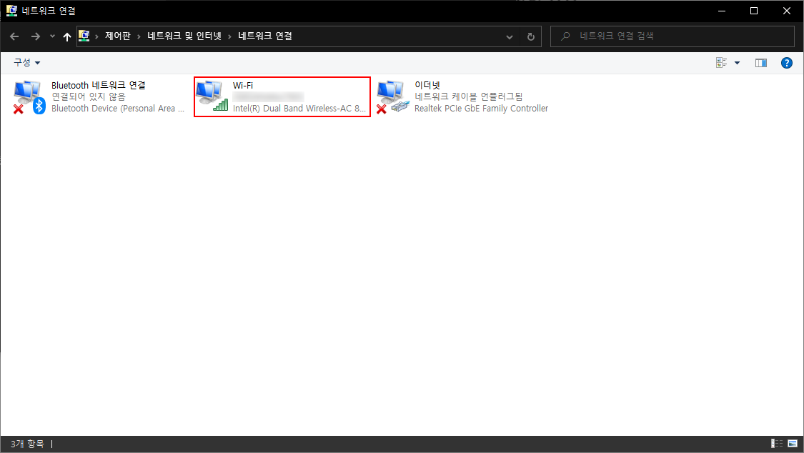 [네트워크 연결] 제어판이 열리면 Wi-Fi가 연결된 장치를
